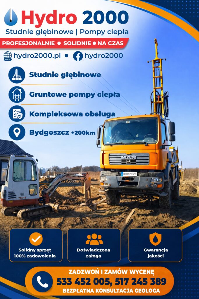 Aby instalacja działała wydajnie i bezawaryjnie przez wiele lat, kluczowe jest prawidłowe wykonanie odwiertów pod dolne źródło ciepła. Firma Hydro2000 posiada doświadczenie oraz odpowiedni sprzęt do wykonywania profesjonalnych odwiertów pod gruntowe pompy ciepła. Dzięki naszej wiedzy i praktyce pomagamy dobrać odpowiednie rozwiązanie oraz zapewniamy solidne wykonanie inwestycji.